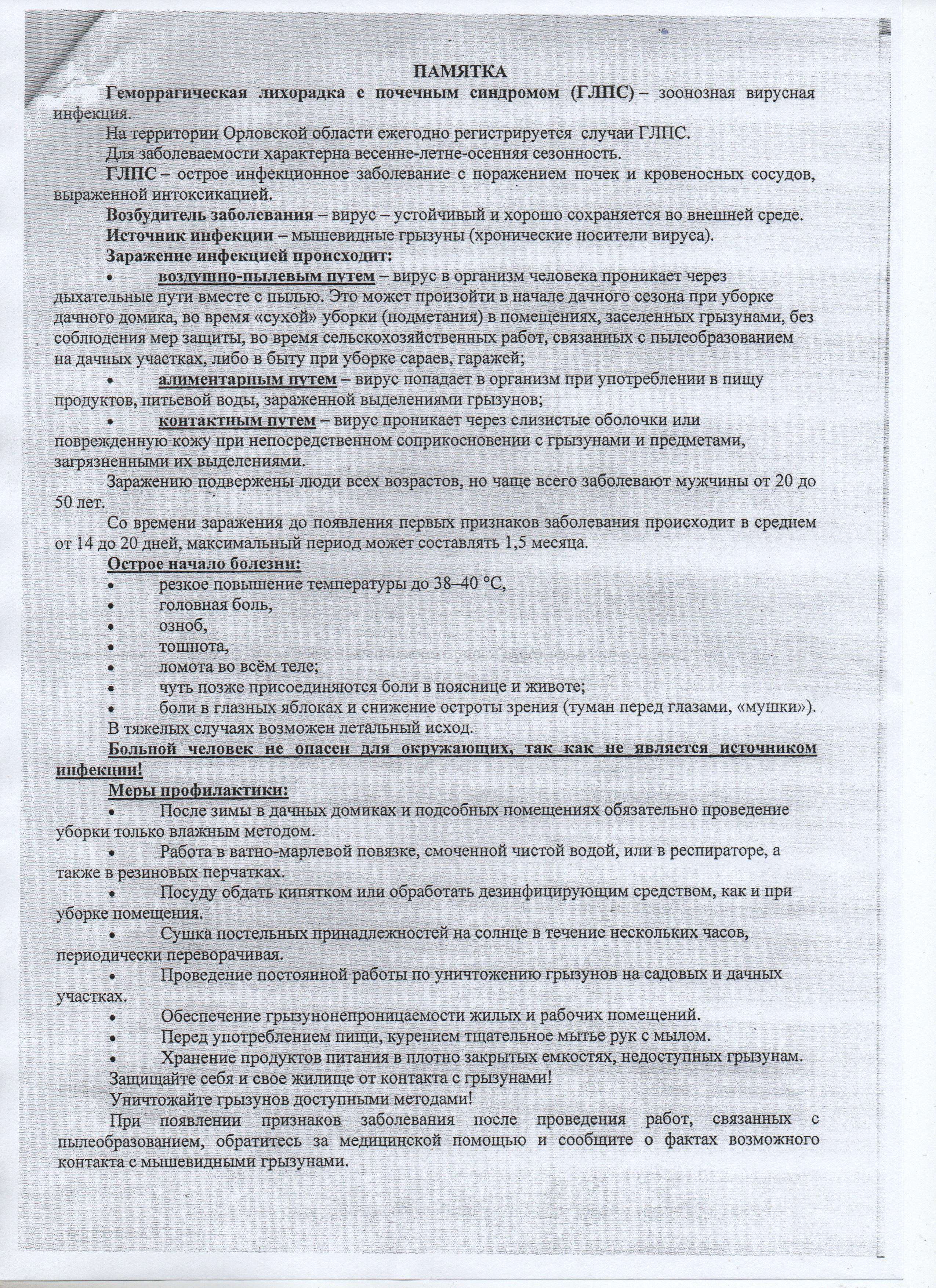 Памятка по профилактике природно-очаговых инфекций на территории Орловской области